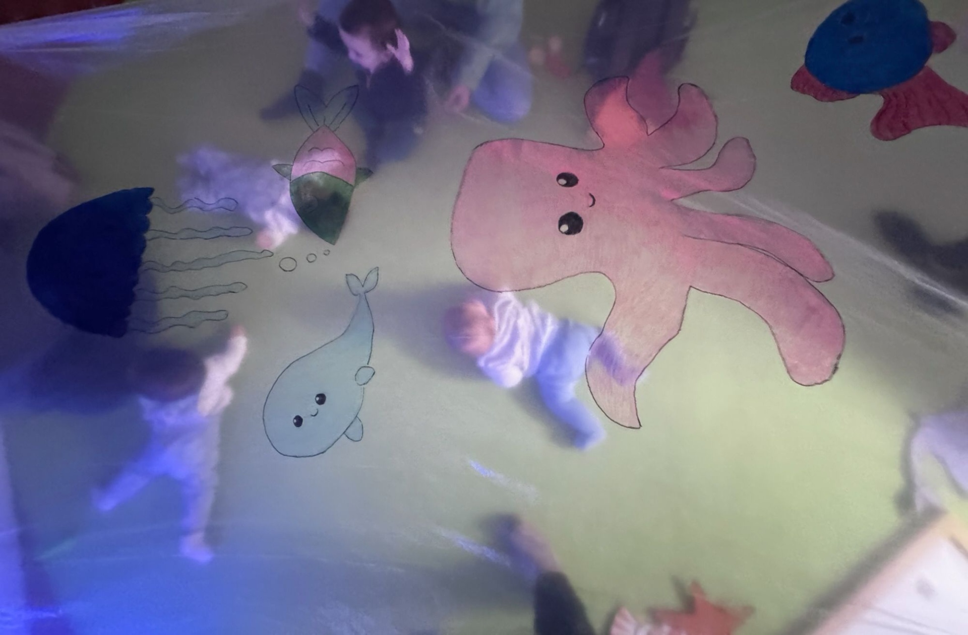 🌟 Workshop de Sombras e Luzes para Bebés | Baby Glow fundo do mar.
