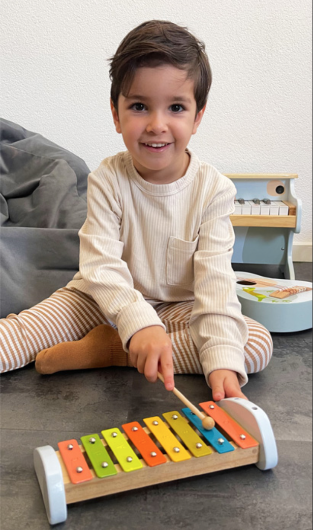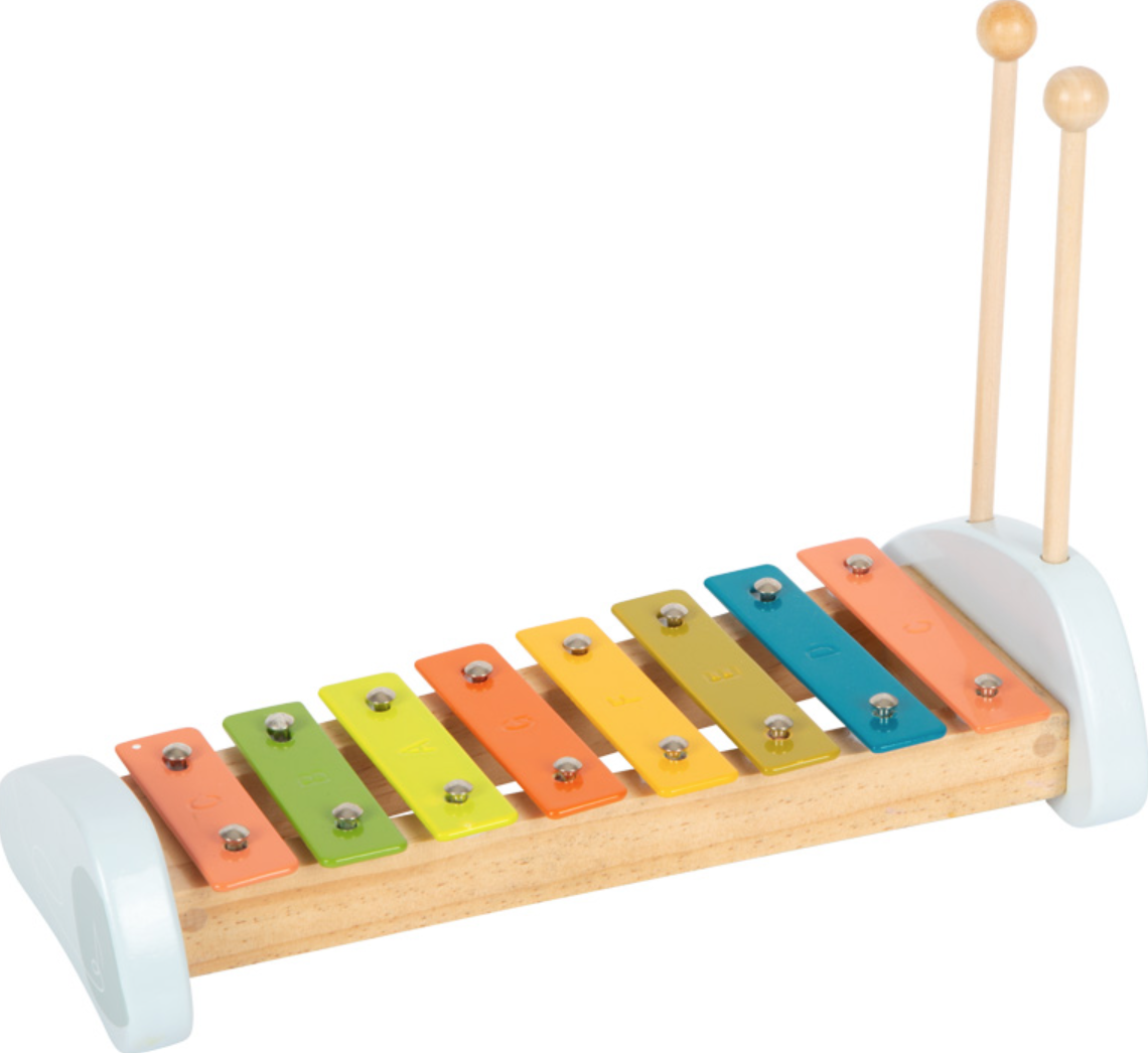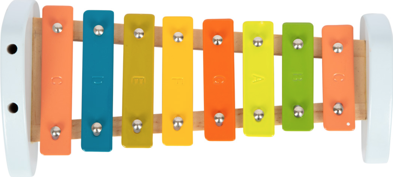O xilofone treina de forma lúdica a consciência acústica, juntamente com o senso de ritmo e batida, e uma primeira compreensão de tons e escalas musicais.